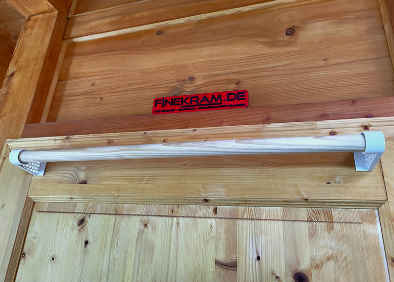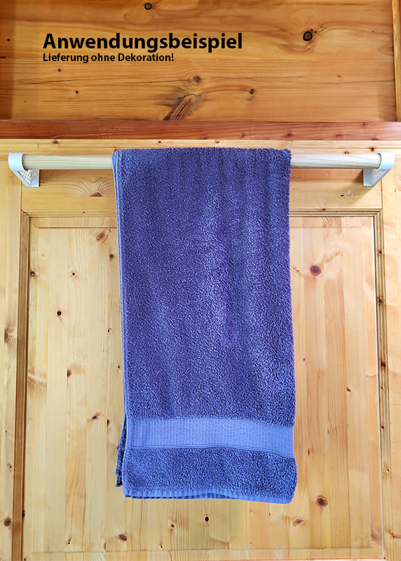- 1x Handtuchhalter, bestehend aus 2x Tür-Clip & 1x Rundholz (80cm (kann nach Belieben gekürzt werden))